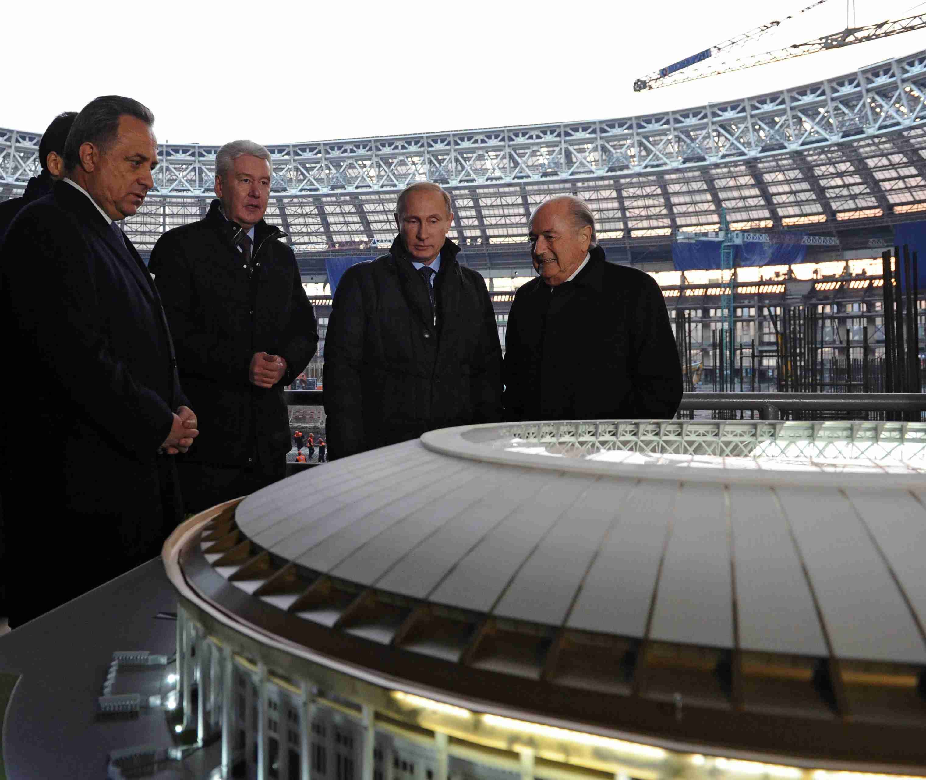 28 октября. Москва. Лужники. Виталий МУТКО, Сергей СОБЯНИН, Владимир ПУТИН и Зепп БЛАТТЕР.