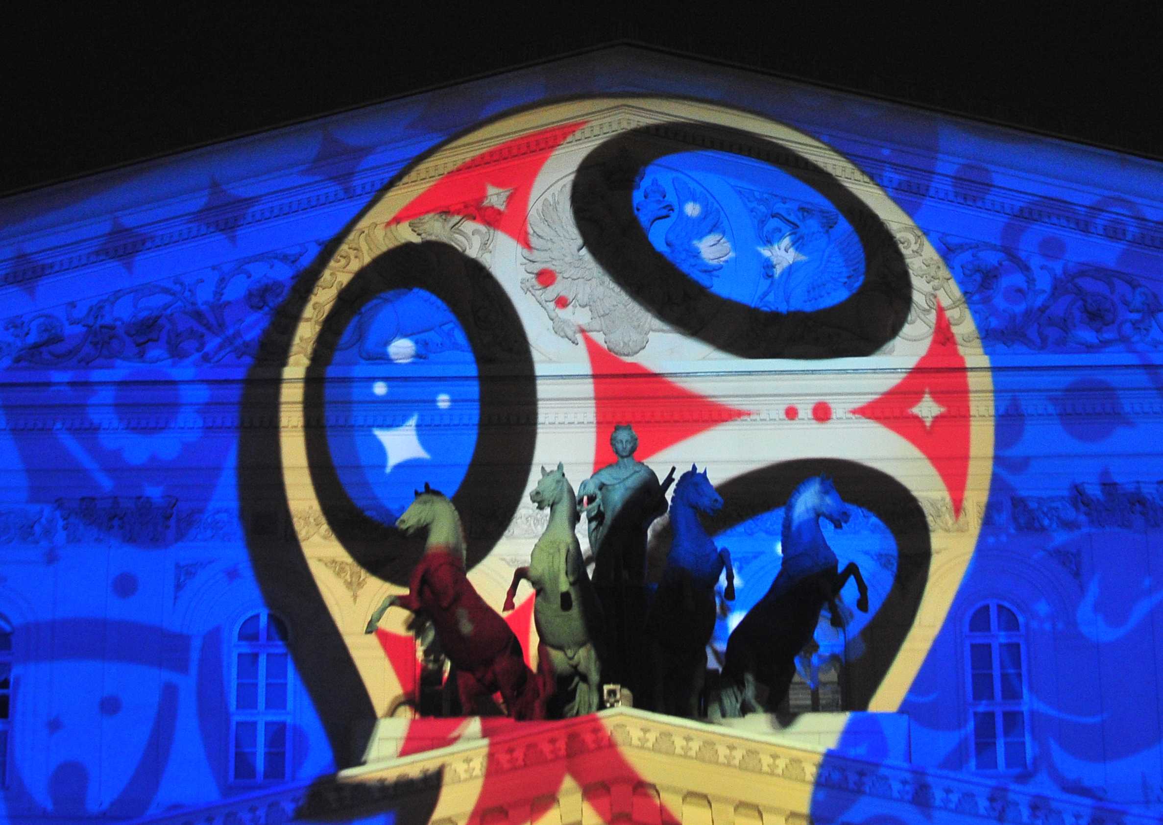 28 октября. Москва. Эмблема ЧМ-2018 на фасаде Большого театра. Фото - Антон СЕРГИЕНКО, "СЭ"