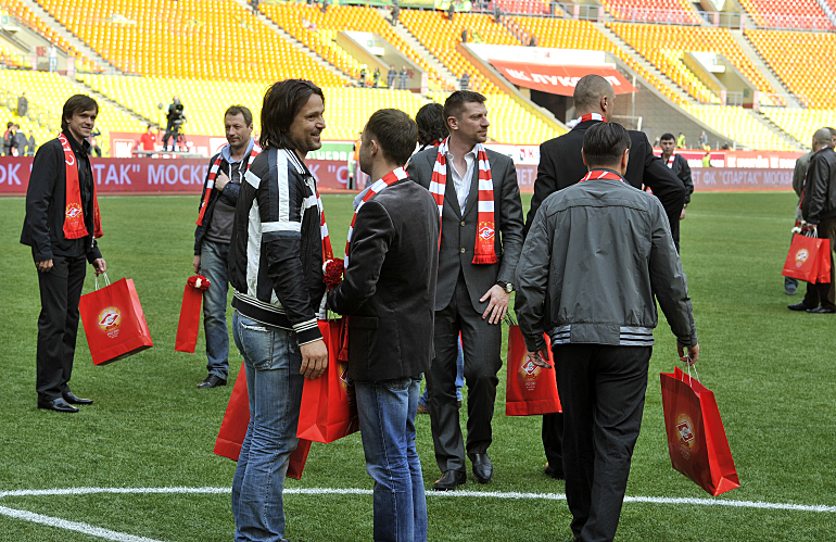 – Там вообще странно было. Подъезжаешь – в жизни не поймешь, что это стадион: "Все, выходим". – "А где стадион-то?" – "Да вон калитка…" Нас смех душил. Но самый прикол случился перед выходом на поле – коридор настолько узкий, что вдвоем не протиснуться. Все перемешались: соперник, ты, соперник… А еще надо мальчика куда-то пристроить. Сверху потолок подпирает. Мне-то ничего, а вот Адамс и Бергкамп пригибались.