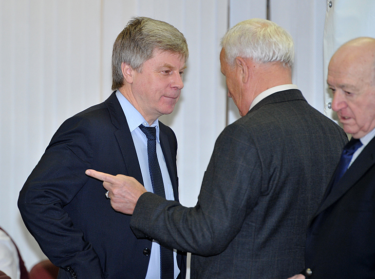 Пятница. Москва. Президент РФС Николай ТОЛСТЫХ, почетный президент союза Вячеслав КОЛОСКОВ и первый вице-президент союза Никита СИМОНЯН. Фото – Александр ФЕДОРОВ, "СЭ"