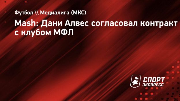 Бывший защитник «Барселоны» Дани Алвес согласовал контракт с клубом российской Медийной футбольной лиги (МФЛ), сообщает Telegram-канал Mash.