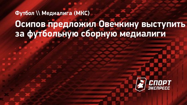 Президент медиалиги (МФЛ) Николай Осипов в разговоре с «СЭ» предложил нападающему «Вашингтону» Александру Овечкину выступить за национальную сборную медиалиги этим летом.