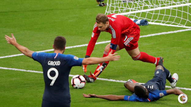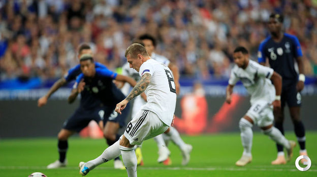 Сборная Германии уступила Франции в матче группового турнира Лиги наций (1:2). Дублем в составе французов отметился нападающий Антуан Гризманн, у немцев отличился хавбек Тони Кроос.