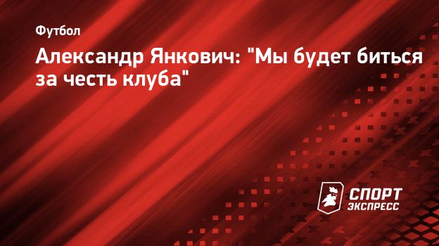 Александр Янкович: "Мы будет биться за честь клуба"