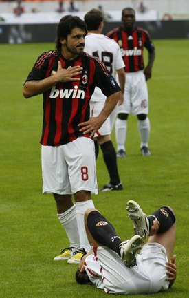 - Согласен с вами, только замечу, что в обыденной жизни вы, Гаттузо, все же смотритесь куда спокойнее, чем на футбольном поле. От того зверя, что участвует в матчах, в быту не остается и следа! |