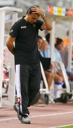 "Может, сразу на тренировку поедут?" - волновались болельщики. Нет - в гостиницу итальянцы все-таки заехали, но ненадолго: времени у них было в обрез - наспех перекусить и собираться на вечернюю тренировку. Не удивительно, что на пресс-конференцию делегация "Удинезе" слегка опоздала. Что не избавило главного тренера Паскуале Марино от потока вопросов. |