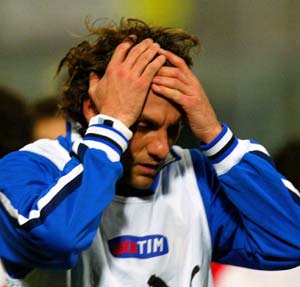 Ведущий форвард итальянского "Интера" Кристиан Вьери не сможет принять участия в сегодняшнем матче Кубка УЕФА против французского "Марселя". Нападающий пострадал в последнем туре чемпионата Италии от бутылки, попавшей ему в голову от руки фанатов "Перуджи", которую "Интер" победил со счетом 3:2. Его место, скорее всего, займет кто-то из пары Альваро Рекоба - Рикардо Крус. |