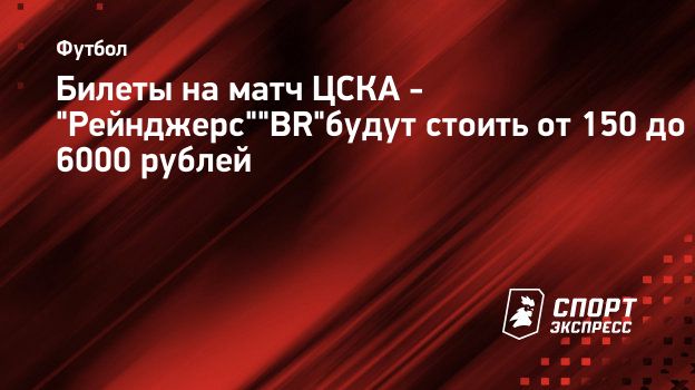 Билеты на матч ЦСКА - "Рейнджерс""BR"будут стоить от 150 до 6000 рублей