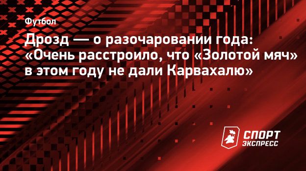 «Меня очень расстроило, что «Золотой мяч» в этом году не дали Карвахалю. Дани должен был получать этот «Золотой мяч», такая карьера и такой сезон шикарный он провел. Поэтому для меня это главное разочарование. Помню, очень расстроился, когда увидел результаты. Почему его не выбрали, я так и не понял», — сказал Дрозд «СЭ».