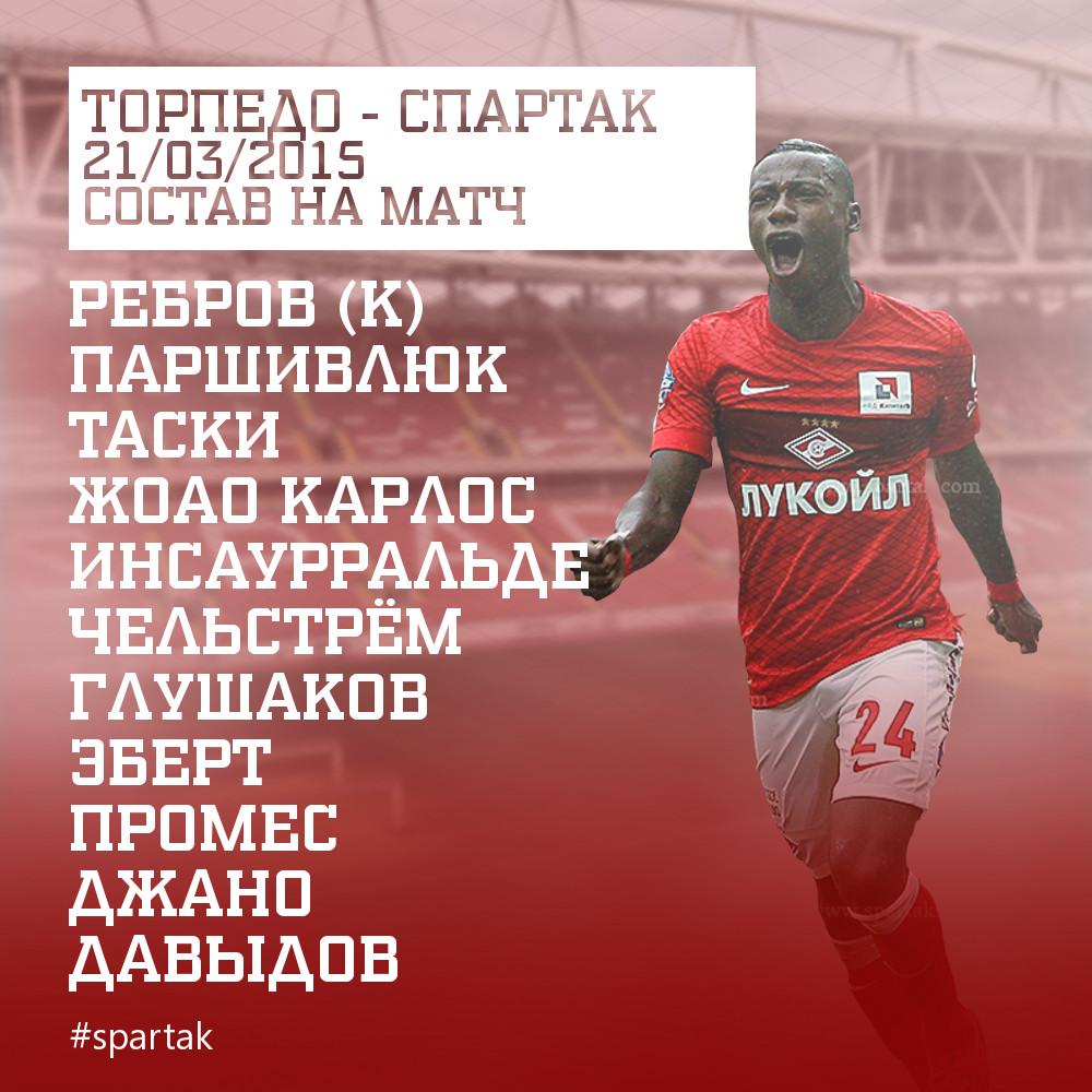 Составы на матч "Торпедо" – "Спартак".