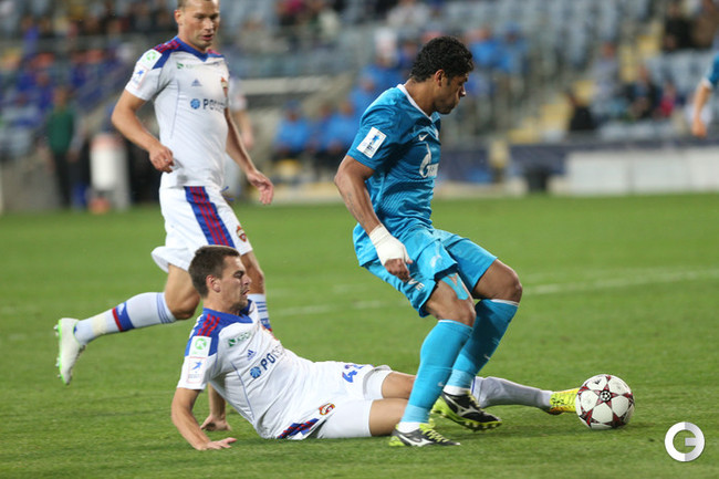 G-Drive Объединенный Суперкубок-2014. 2-й тур. "Зенит" (Санкт-Петербург) – ЦСКА – 2:0 (1:0). Голы: Халк, 17 (1:0). Шатов, 89 (2:0). Фото - Валентин Кобыща, ПФК ЦСКА и Вячеслав Евдокимов, ФК "Зенит"