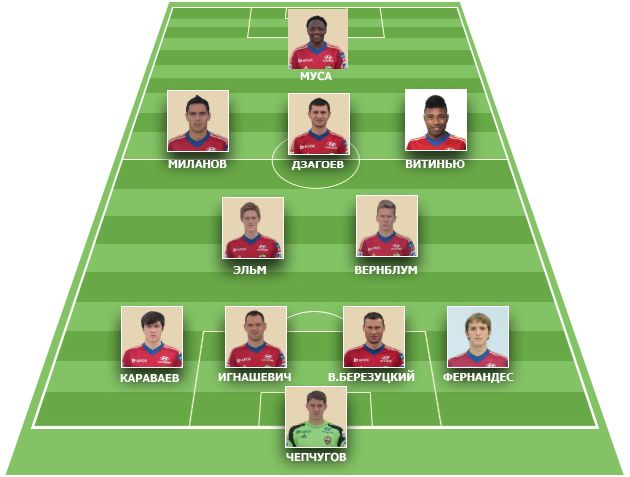 Полузащитники Вернблум, Рахимич, Эльм, Тошич, Дзагоев, Миланов, Цауня, Цубер, Ефремов.