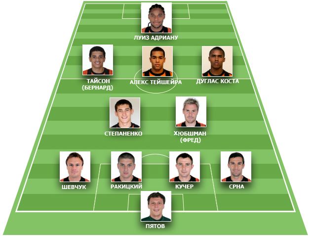Полузащитники Илсинью, Дуглас Коста, Фред, Веллингтон Нем, Степаненко, Фернанду, Тайсон, Алекс Тейшейра, Бернард, Хюбшман.