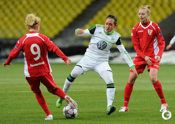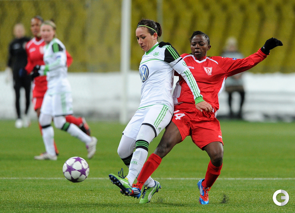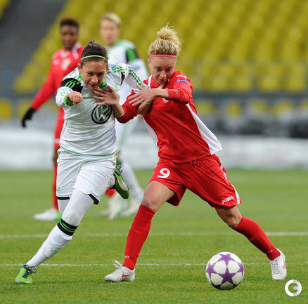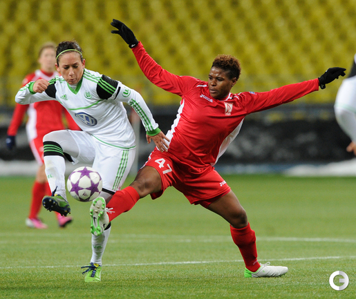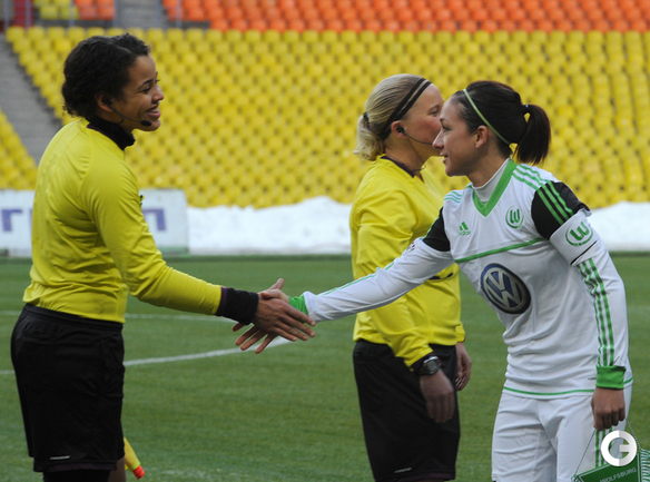 На гала-вечере ФИФА в Цюрихе названа лучшая футболистка по итогам 2014 года. Ею стала игрок сборной Германии и "Вольфсбурга" Надин Кесслер. В 2014-м атакующий полузащитник победила с клубом в чемпионате и Кубке Германии, а также в Лиге чемпионов и была признана УЕФА лучшим игроком года в Европе. В тройке финалистов также были Эбби Вамбах (США, "Вестерн Нью-Йорк Флеш") и Марта (Бразилия, "Русенгорд" Швеция). Фоторепортаж с матча Лиги чемпионов среди женщин, 1/4 финала, Ответный матч, "РОССИЯНКА" (Россия) – "Вольфсбург" (Германия) – 0:2. Фото - Никита УСПЕНСКИЙ, "СЭ"