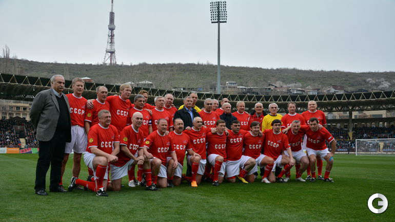 В Ереване на Республиканском стадионе завершился матч между сборными мира и СССР, посвященный 60-летию легендарного футболиста ереванского "Арарата" и сборной СССР Хорена Оганесяна. Игра завершилась со счетом 3:3. Фото football365
