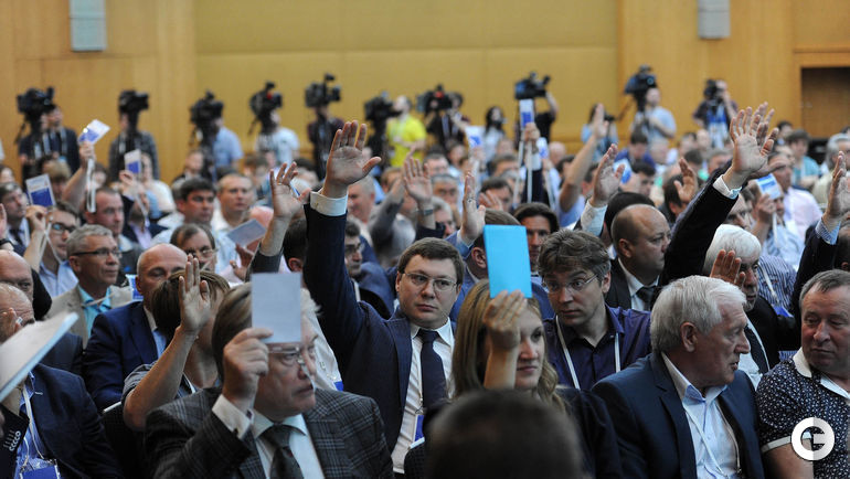 На конференции РФС решается вопрос о досрочном прекращении деятельности Николая Толстых на посту президента РФС. Фото Алексей ИВАНОВ, "СЭ"