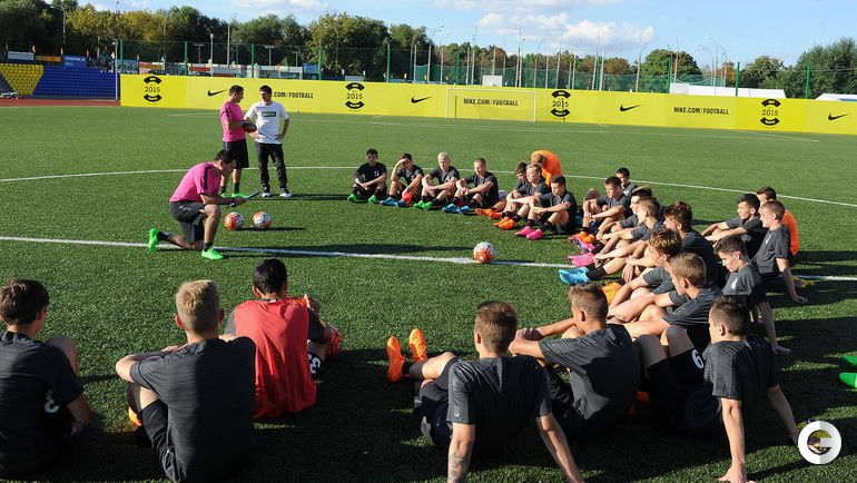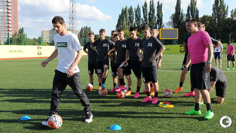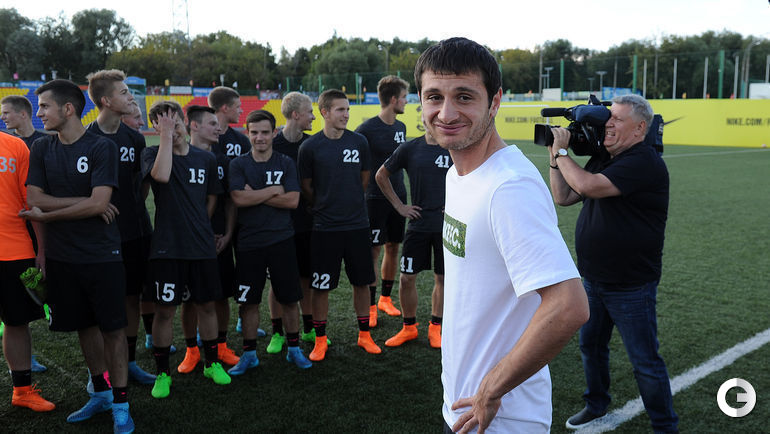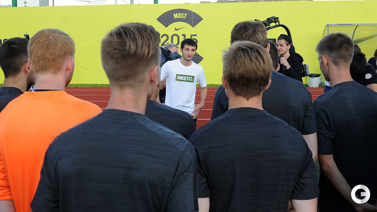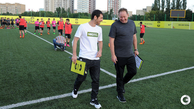 23 августа 2015 года. Москва. После победы над "Ростовом" главный тренер ЦСКА и сборной России Леонид Слуцкий и армеец Алан Дзагоев посетили детский турнир по футболу в Москве и дали мастер-класс молодым футболистам. Фото Алексея Иванова, "СЭ"