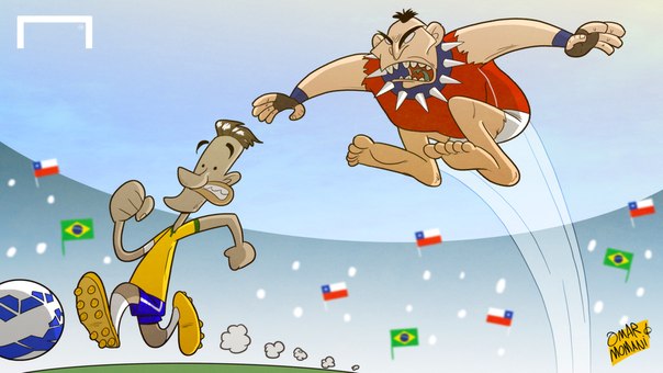 Полузащитник сборной Чили Гари Медель использовал приемы боев без правил против нападающего бразильцев Неймара.