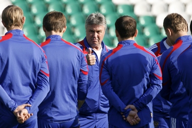 Несмотря на то, что официально открытой будет вечернее занятие в среду, вторничный заезд на Восточную улицу не остался без внимания зрителей. На стадион организованно прибыли команды-участницы финального турнира Детской футбольной лиги. Так что шумовой фон у тренировки команды Хиддинка получился неплохим: юные футболисты с интересом наблюдали за действиями первых игроков страны. Девять молодых талантов - по человеку от команды - были делегированы на бровку. В их задачу входило поймать сборников - воспитанников своих школ, одарить их майками, разжиться автографами и фотографией на память с главным тренером национальной команды. Между делом гостям столицы устроил допрос президент РФС Виталий Мутко, заглянувший на тренировку. Глава российского футбола и министр спорта поинтересовался условиями роста молодежи в регионах и изучил оформление маек юношей, на спинах которых были написаны фамилии их известных футбольных земляков.