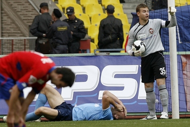 - У Коллера сломан нос. Меня поражает тот факт, не хочу говорить про судейство, но когда такой арбитр претендует на "Золотую мантию", это трагично. Когда человек лежит со сломанным носом, а судья продолжает встречу и даже не подходит спросить, что случилось. Не говорю про трактовку каких-то моментов. Просто если бы Акинфеев не привлек внимание, Сухина так бы и не заметил, что у Коллера сломан нос, что он лежит за пределами футбольного поля.
