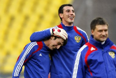 Занятие было открытым для болельщиков, которых собралось несколько сотен. Первыми, правда, на арене появились не они, а журналисты и Андрей Аршавин. Тот выбежал на поле чуть ли не прямиком из прибывшего без трех минут пять к служебному входу автобуса. Арсеналец успел отработать несколько ударов по воротам, прежде чем на синтетику Лужников вступили его партнеры. Игорь Корнеев шагнул с беговой дорожки с возгласом: "Аршавин, ты уже здесь?!"