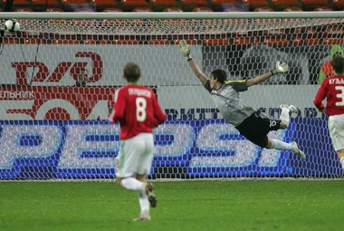 Два дельных эпизода за минуту состоялись после выстрела Гатагова. Первый – сам удар полузащитника из-за штрафной низом в дальний, правый угол. Кински вытянулся в струнку и срезал мяч за лицевую. Второй – две попытки только что вышедшего на поле Фалля переиграть вратаря после подачи углового. Сначала джокер угодил в сократившего угол обстрела капитана гостей, потом в спешке послал мяч мимо створа. Первое домашнее поражение в чемпионате-2009 было для красно-зеленых совсем рядом. Но все-таки гол хозяев вызрел и свалился на сатурновскую оборону. После подбора у чужой штрафной Гатагов даже ударить не успел. Срезка и рикошеты от трех окруживших хавбека защитников доставили мяч стоящему за спиной Ангбва (и не во "вне игры") Сычеву. Тот ударил низом в угол. И побежал с партнерами и мячом к центру поля.