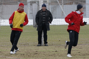 - Хорошо ребята поработали. И снег, и дождь – вполне спартаковская погода, - сказал многолетний рулевой девятикратных чемпионов России, ныне консультант тренерского штаба красно-белых Олег Романцев после тренировки.
