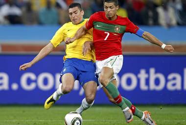 Если в первые 45 минут у пентакампеонов порой было более чем двукратное преимущество по владению мячом, то во второй половине матча португальцы эти неприятные цифры сбили. А дриблинг Криштиану Роналду, несколько раз наносившего безнадежные удары с дистанции, едва не принес результат. Проскочив Жуана и поборовшись уже на входе в штрафную справа с Лусиу, капитан европейских бразильцев заставил капитана бразильцев настоящих срезать мяч вдоль ворот. Замыкать штангу летел Раул Мейрелеш, в ноги которому бросился Жулиу Сезар. Вратарь не дал "Джабулани" влететь в угол, после чего соперник прошелся по его спине шипами. Благо, что после оказания помощи замена первому номеру не потребовалась.