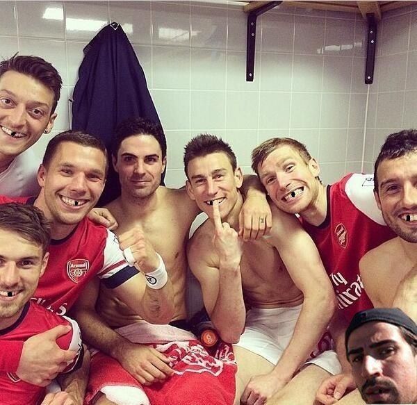 Испанский полузащитник "Арсенала" Микель Артета лишился зуба в матче 35-го тура чемпионата Англии против "Халла" (0:3). Его партнеры по команде в раздевалке устроили небольшое беззубое представление: