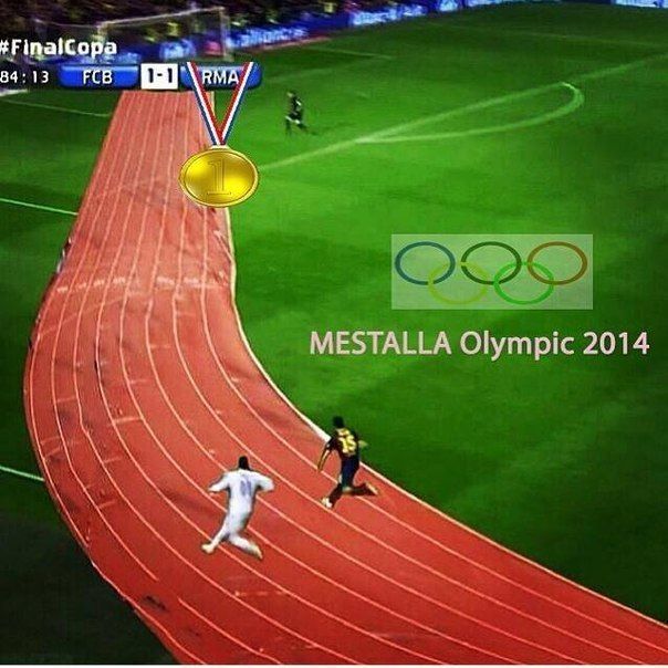 На счету Бэйла победный мяч в ворота каталонцев, забитый на 85-й минуте встречи, и выигранная спринтерская дуэль у защитника "Барселоны" Марко Бартры, тут же ставшая одним из главных сюжетов мемов и карикатур. Скорость рывка валлийского полузащитника перед забитым голом составила около 9,64 м/с (34,7 км/ч). Для сравнения, скорость бега самого быстрого человека в мире, Усэйна Болта, на стометровой дистанции составляет около 10,49 м/с (37,76 км/ч), а на лучших 20 метрах его показатели достигали 12,42 м/с: