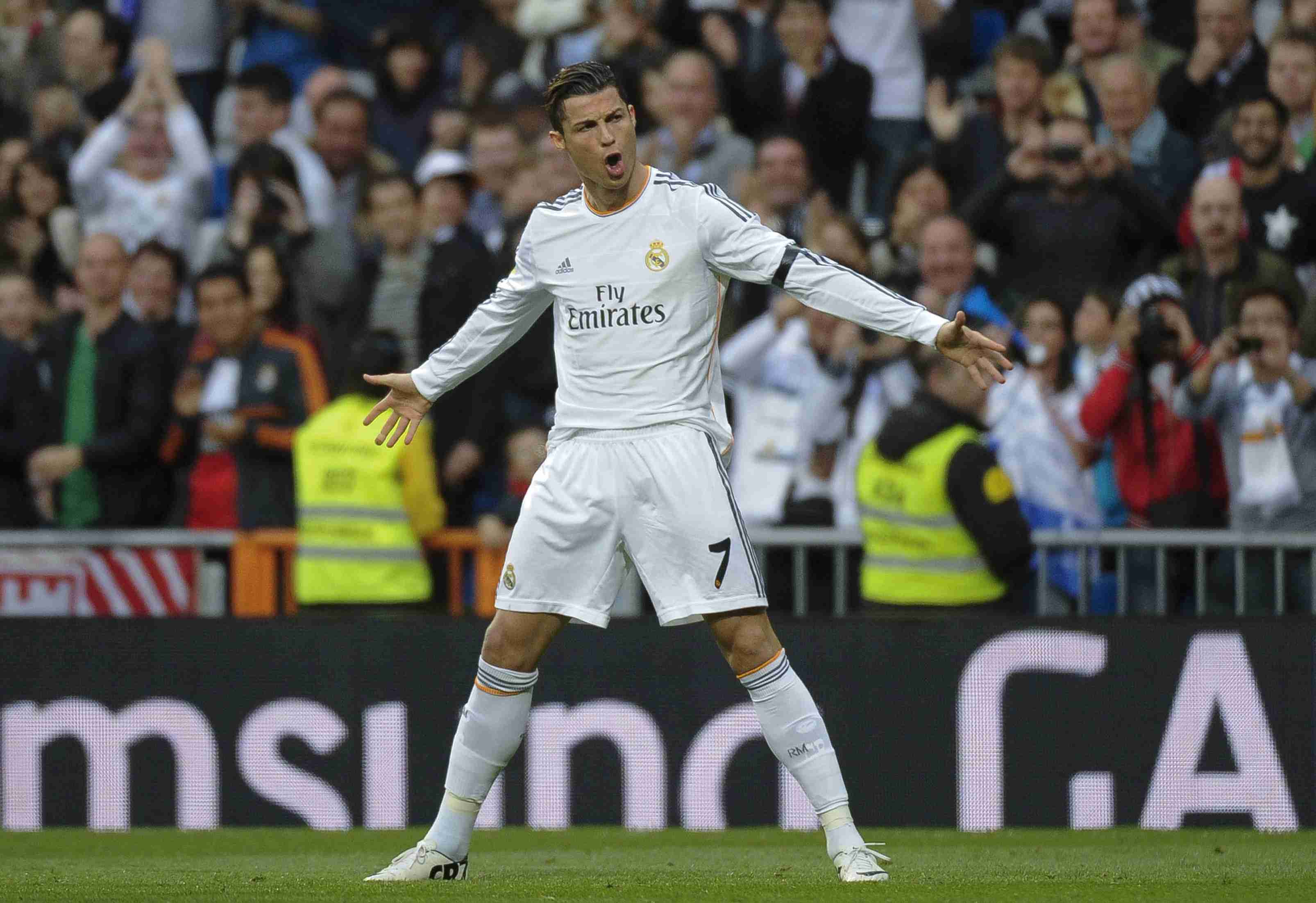 Вернувшийся на поле после травмы португальский нападающий "Реала" Криштиану Роналду эмоционально празднует забитый мяч в ворота памплонского клуба…
