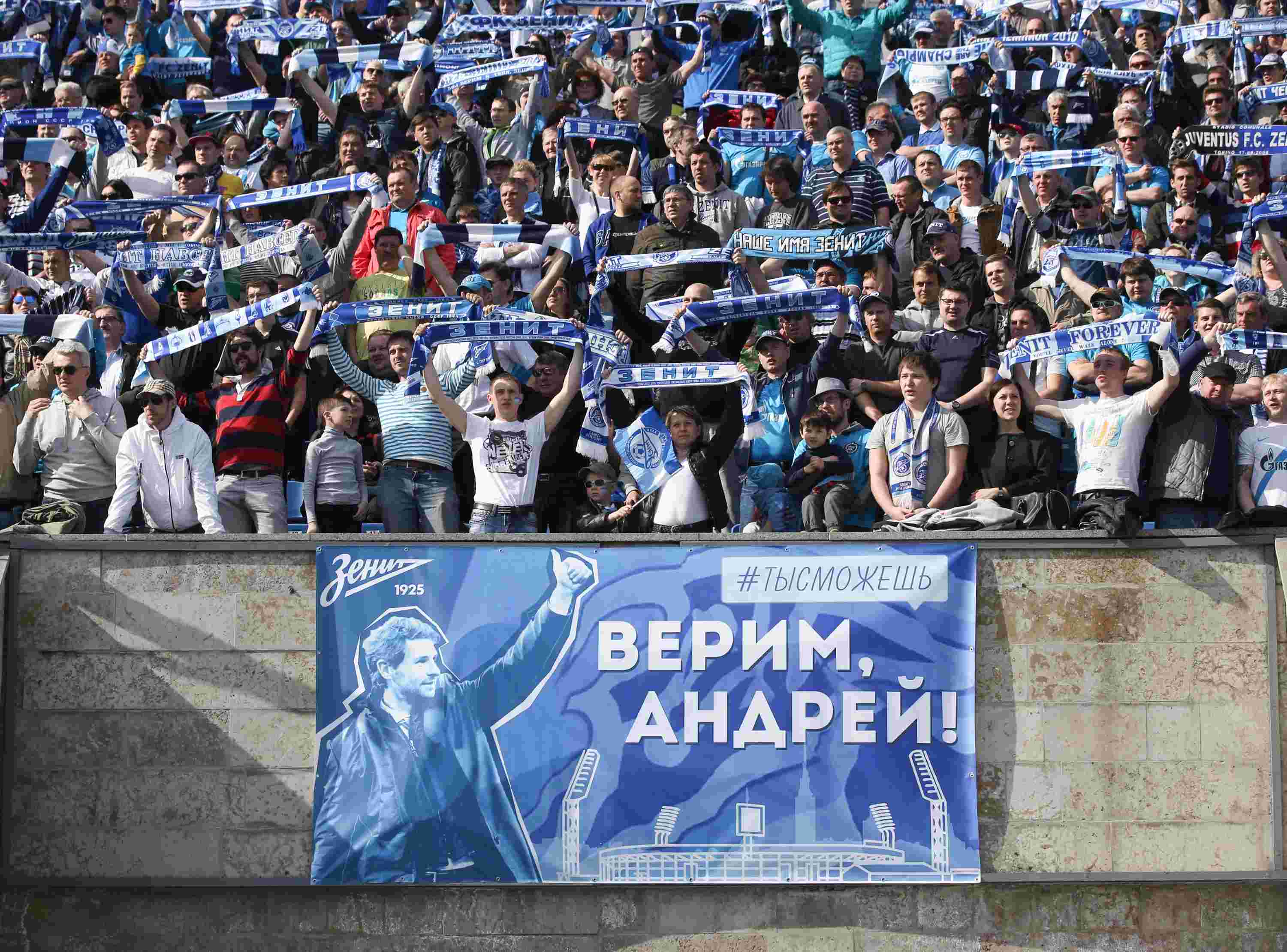 Болельщики питерского клуба верят в Андрея – португальского наставника клуба Андре Виллаш-Боаша, которому посвятили баннер на домашнем поединке 27-го тура: