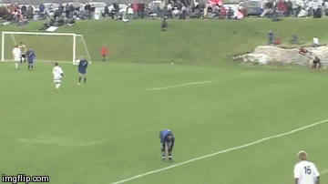 Во время матча двух американских любительских команд один из футболистов решил ввести мяч нестандартным способом. Вот, что из этого вышло.