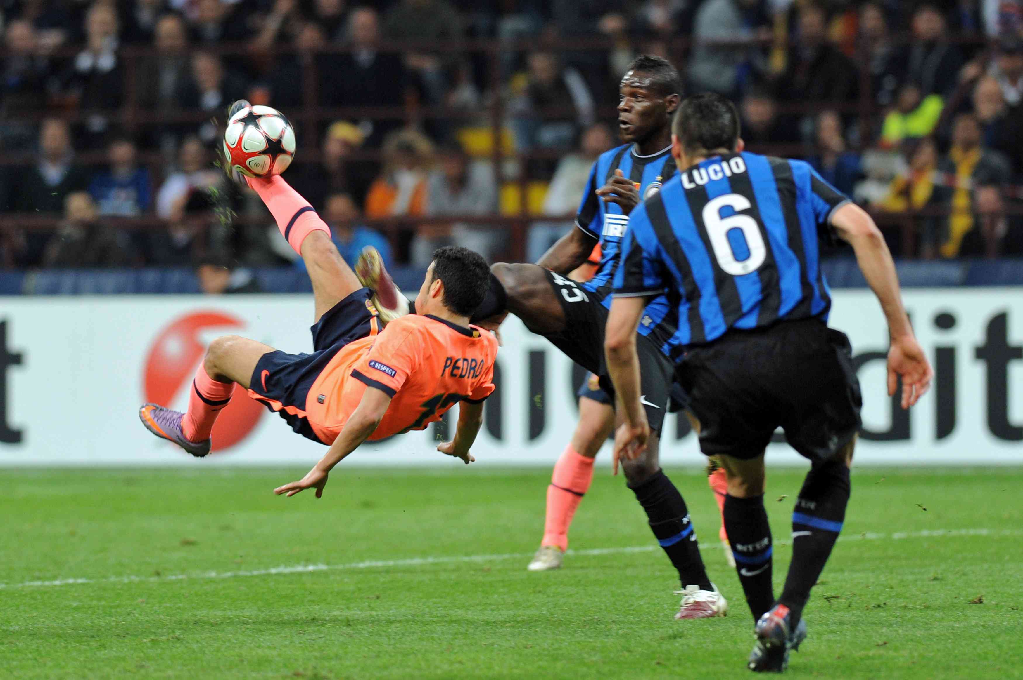 20 апреля 2010. Милан. "Интер" - "Барселона" - 3:1. С мячом форвард испанцев Педро РОДРИГЕС. Фото AFP