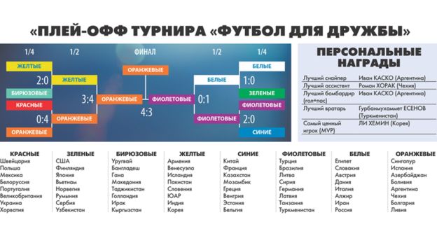 – Сейчас мир переживает непростые времена, но на турнире "Футбол для дружбы" в одной команде могут играть ребята из США и Ирана, из Сирии и Турции. Это здорово?