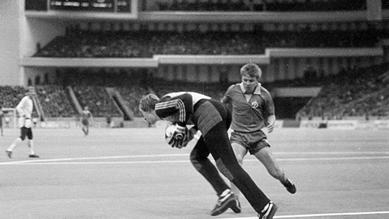 Долго гола ждать не пришлось. Через семь минут Евтушенко отпасовал на ход Рацу, казалось, поторопился. Васильев и Головня явно опережали киевлянина. Васильев поспел первым и из трех вариантов распорядиться мячом выбрал худший, покатил мяч Прудникову, да так коряво, что настырный Рац выскочил из-за его спины и уложил мяч в московские сети. Хозяев забитый гол успокоил, придал уверенности, и вскоре они наладили свою фирменную командную игру. Строилась она на четком взаимодействии и взаимозаменяемости игроков. В зависимости от ситуации киевляне умело меняли темп и ритм игры. Первый тайм прошел с заметным их преимуществом.