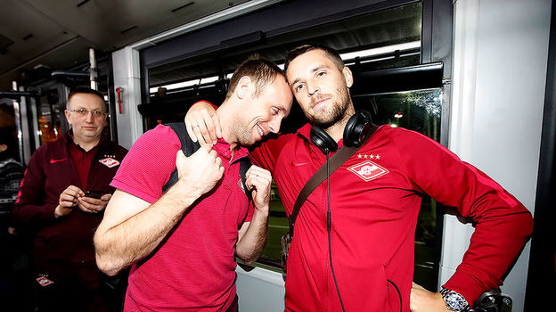 Дмитрий КОМБАРОВ (справа) с капитаном "Спартака" Денисом ГЛУШАКОВЫМ. Фото Александр СТУПНИКОВ, ФК "Спартак"