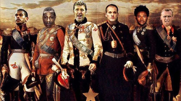 Квинси Промес выложил на своей странице в Инстаграме коллаж, на котором главный тренер Массимо Каррера изображен как полководец XIX века, а сам голландец с Фернанду, Артемом Ребровым, Луизом Адриану и Денисом Глушаковым - как генералы из окружения командующего.