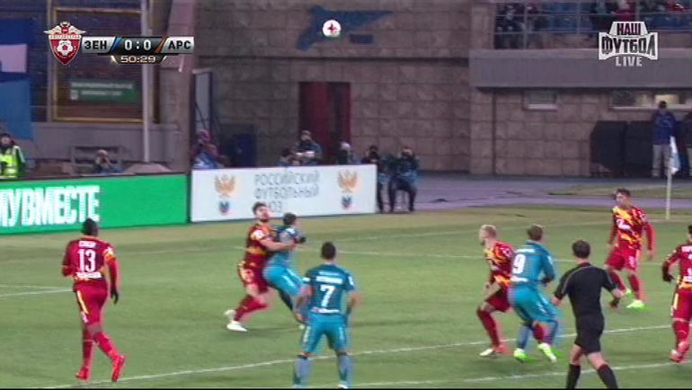 На 51-й минуте матча 20-го тура чемпионата России "Зенит" – "Арсенал" правильное решение принял арбитр Алексей Еськов, назначив пенальти в ворота гостей. Защитник тульской команды Беляев, ведя борьбу с Дзюбой, держал соперниками руками. Это ясно видел судья, который, не раздумывая, наказал нарушителя правил 11-метровым. (Александр БОБРОВ)