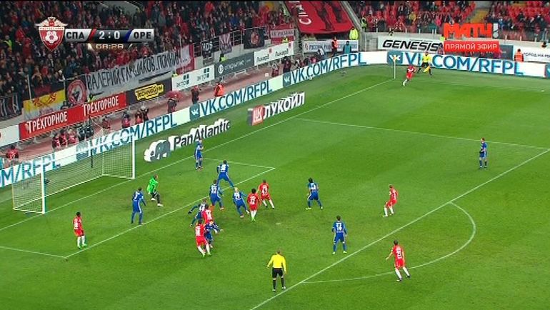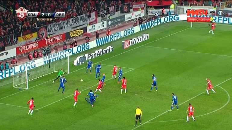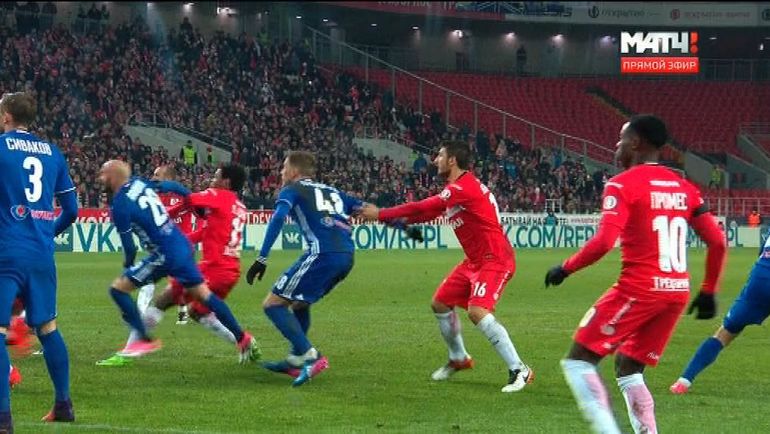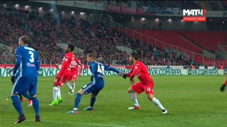 Спустя минут семь организаторы телетрансляции показали повтор момента крупным планом. Защитник красно-белых, который боролся за позицию с Максимом Григорьевым, схватил соперника за руку и уронил его на газон. Чистяков расположился на поле таким образом, что увидел все детали единоборства и правильно не зафиксировал взятие ворот "Оренбурга". (Александр БОБРОВ)