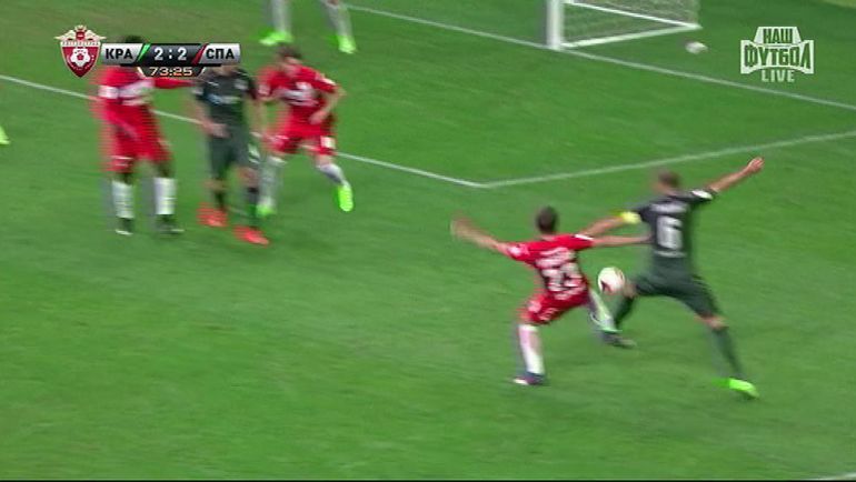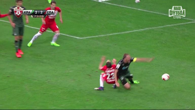 На 72-й минуте матча 18-го тура чемпионата России "Краснодар" – "Спартак" арбитр Владислав Безбородов определил, что Дмитрий Комбаров в штрафной гостей нарушил правила в борьбе с Андреасом Гранквистом, и назначил 11-метровый удар в ворота красно-белых. Судя по всему, судья решил, что спартаковец совершил фол по неосторожности, ударив правой ногой по левой ноге соперника.
