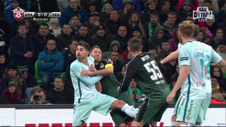 На 43-й минуте матча 15-го тура чемпионата России "Краснодар" - "Зенит" арбитр Алексей Николаев имел формальные основания назначить 11-метровый удар в ворота гостей, когда Хави Гарсия в своей штрафной задержал руками Гранквиста, выиграл таким образом позицию и оказался первым на мяче.
