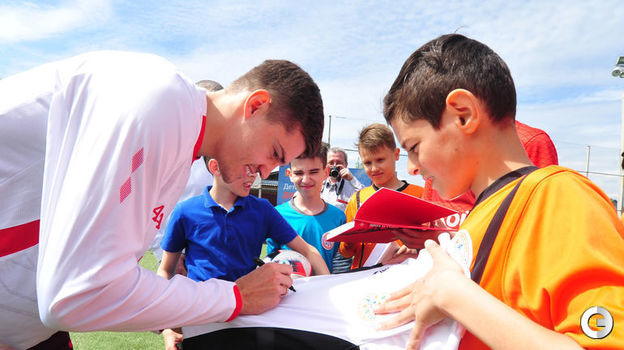 Чемпионы России, полузащитники "Спартака" Квинси Промес и Роман Зобнин побывали в академии экс-капитана и главного тренера красно-белых Дмитрия Аленичева. Планировалось, что футболисты проведут для детей мастер-класс, но дело ограничилось автограф-сессией и совместными фото, так как хавбеки торопились на тренировку – в воскресенье красно-белым играть в Туле в рамках последнего, 30-го тура премьер-лиги. Промес и Зобнин тепло пообщались со своим экс-тренером. На прощание Аленичев пожелал голландцу забить побольше голов в Лиге чемпионов. За "Спартак". Интервью Аленичева - по ссылке.