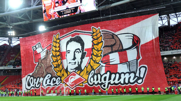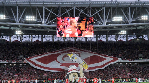 ...На поле – духовой оркестр. На трибуне В – старая добрая спартаковская эмблема. На D – надпись, о которой я говорил в начале этого репортажа. А первый символический удар по мячу идут делать сразу двое. 90-летний Арнольд Федун – отец владельца "Спартака", болельщик красно-белых, которому человек, построивший этот прекрасный и теперь победный стадион, наряду с Никитой Симоняном посвятил это золото. И лучший вратарь мира 1988 года Ринат Дасаев.