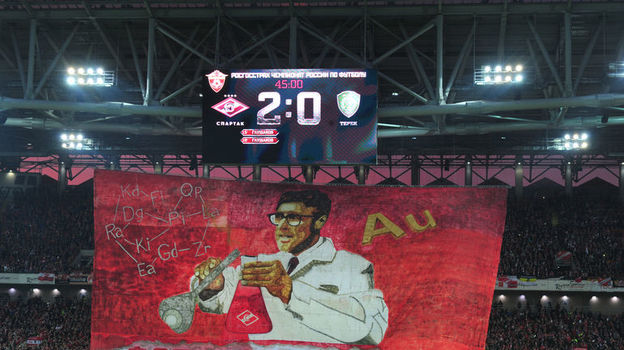 Второй тайм начался с еще двух красивейших баннеров. На одном одетый в белый халат "химик" Каррера выводил то, что было названо "Формулой успеха". На втором начертано – "Периодическая таблица элементов чемпионства "Спартака". На футбольной стилизации таблицы Менделеева указали не только всех игроков, но и врачей, массажистов, администраторов...