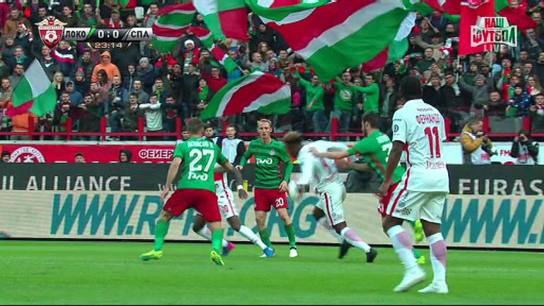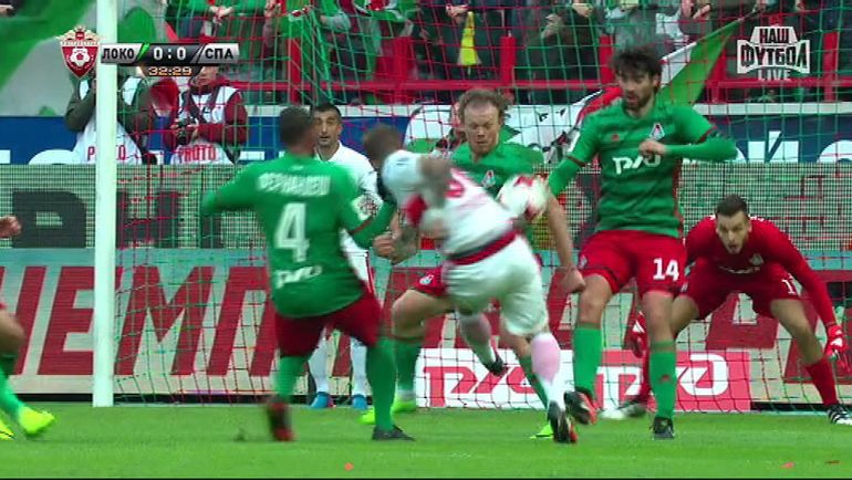 Михаил Вилков имел основания назначить 11-метровый удар в ворота хозяев поля, но не стал этого делать, продолжив игру. В том эпизоде в штрафной площади железнодорожников Соломон Кверквелия подтолкнул в спину Зе Луиша, и спартаковец упал на газон. Судья счел, что защитник "Локомотива" правил не нарушал и за свои действия не может быть наказан пенальти.