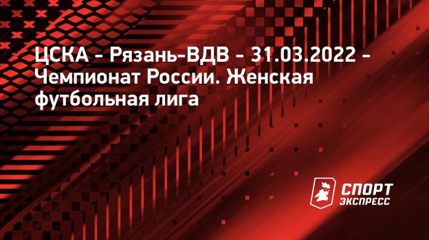 "СЭ" рад приветствовать всех любителей футбола! Здесь вас ждет онлайн-трансляция матча ЦСКА (Москва) – Рязань-ВДВ (Рязань). Чемпионат России. Женская футбольная лига, 4-й тур Матч пройдет 31 марта 2022 года на стадионе Новые Химки (Химки, Россия). Начало - в 17:00 по московскому времени.