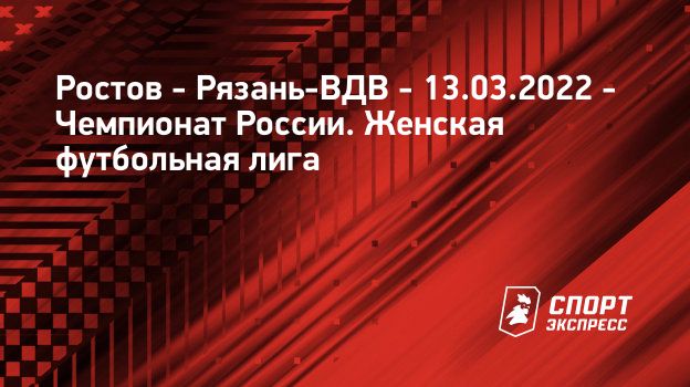 "СЭ" рад приветствовать всех любителей футбола! Здесь вас ждет онлайн-трансляция матча Ростов (Ростов-на-Дону) – Рязань-ВДВ (Рязань). Чемпионат России. Женская футбольная лига, 1-й тур Матч пройдет 13 марта 2022 года на стадионе Олимп XXI век (Ростов-на-Дону, Россия). Начало - в 15:00 по московскому времени.