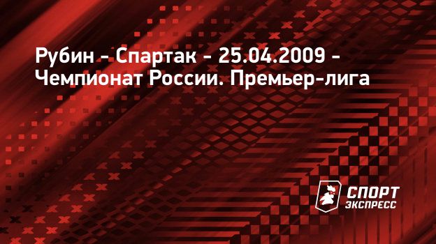 "СЭ" рад приветствовать всех любителей футбола! Здесь вас ждет онлайн-трансляция матча Рубин (Казань) – Спартак (Москва). Чемпионат России. Премьер-лига, 6-й тур Матч пройдет 25 апреля 2009 года на стадионе Центральный (Казань, Россия). Начало - в 14:00 по московскому времени.