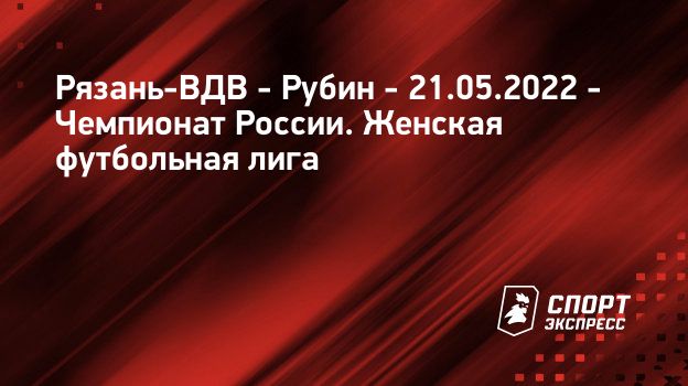 "СЭ" рад приветствовать всех любителей футбола! Здесь вас ждет онлайн-трансляция матча Рязань-ВДВ (Рязань) – Рубин (Казань). Чемпионат России. Женская футбольная лига, 11-й тур Матч пройдет 21 мая 2022 года на стадионе Рязань Арена (Рязань, Россия). Начало - в 14:30 по московскому времени.